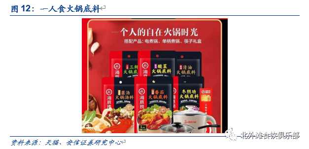颐海国际基于其正在暖锅调料方面的领先劣势,积极进行新品研发,不竭拓展产物品类,引入差同化新品。跟着公司的不竭成长,特别是正在“海底捞”这一暖锅界金字招牌的强力支撑下,颐海国际的产物线曾经成长到涵盖暖锅底料、蘸料、中式复合调味料、包罗自热小暖锅、自热米饭、冲泡系列等正在内的便利速食物、即食酱、休闲食物及第三方定制餐饮等多个范畴,2C终端承认度不竭提高。