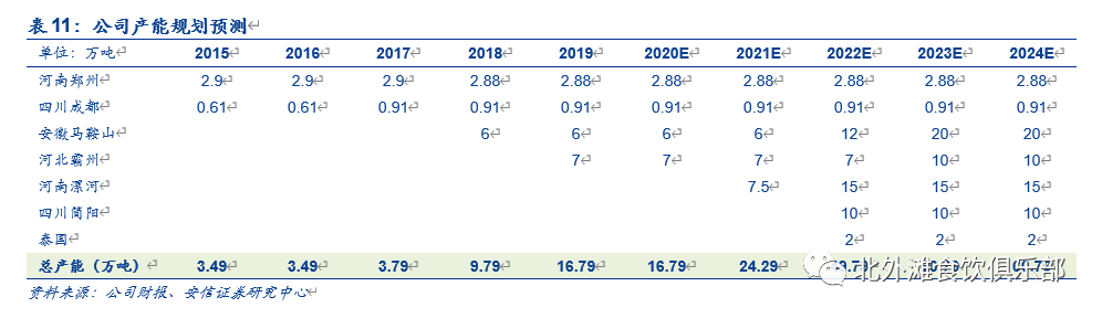3)漯河项目:河南漯河出产正在2019年动工兴建,一期工程估计将于2021岁尾投产,预期产能为15万吨,二期设想产能为15万吨,估计将于2022年投产,此出产将包含暖锅底料、蘸 料及即食酱等产物的 出产线,有帮于缓解现时郑州工场的产能压力。