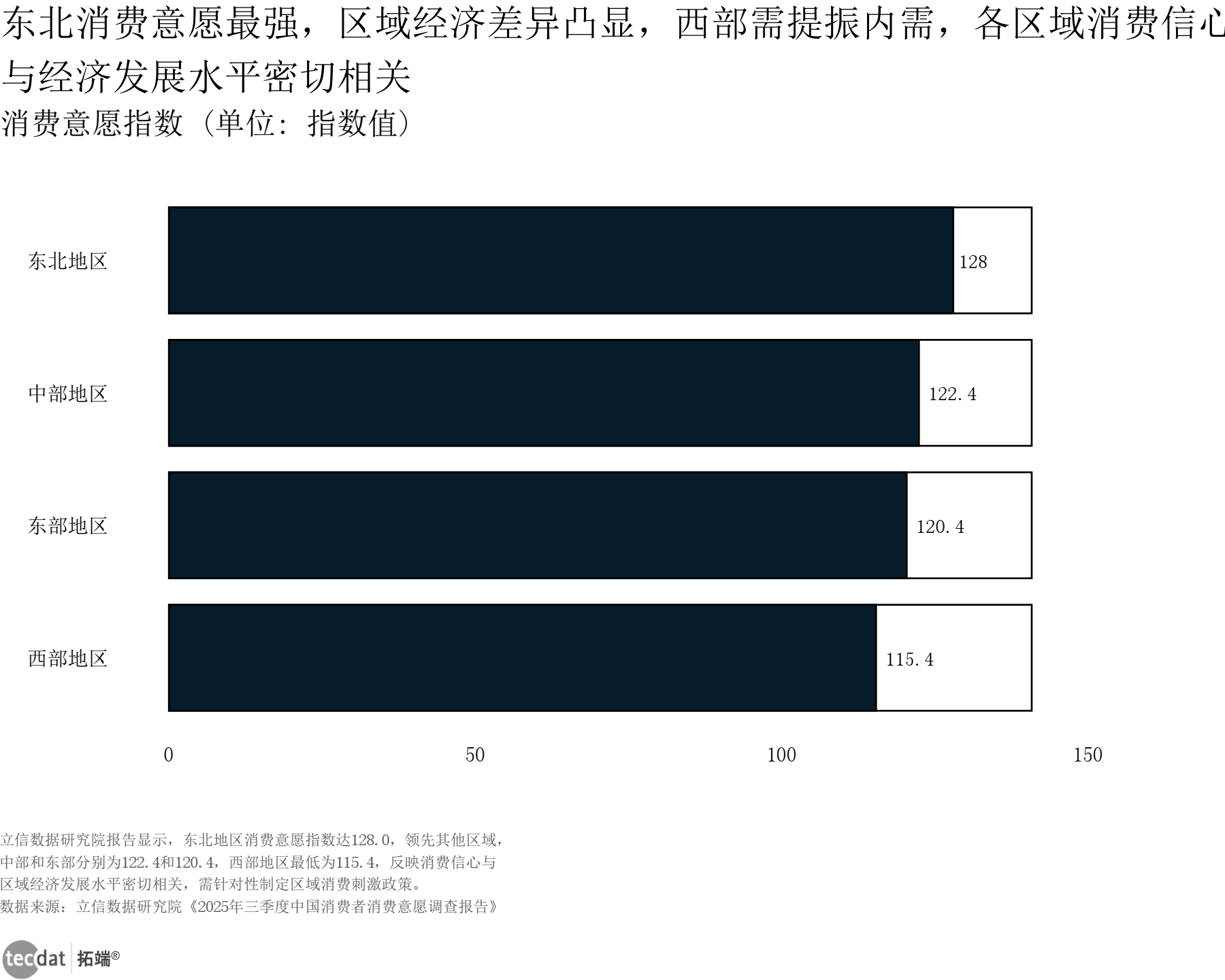 3秒解读:东北地域消费志愿指数达128。0,中部122。4、东部120。4紧随其后,西部地域以115。4排名最低,东北的高志愿可能取本地“立即消费”习惯、区域政策刺激相关,而西部则需进一步激活内需潜力。