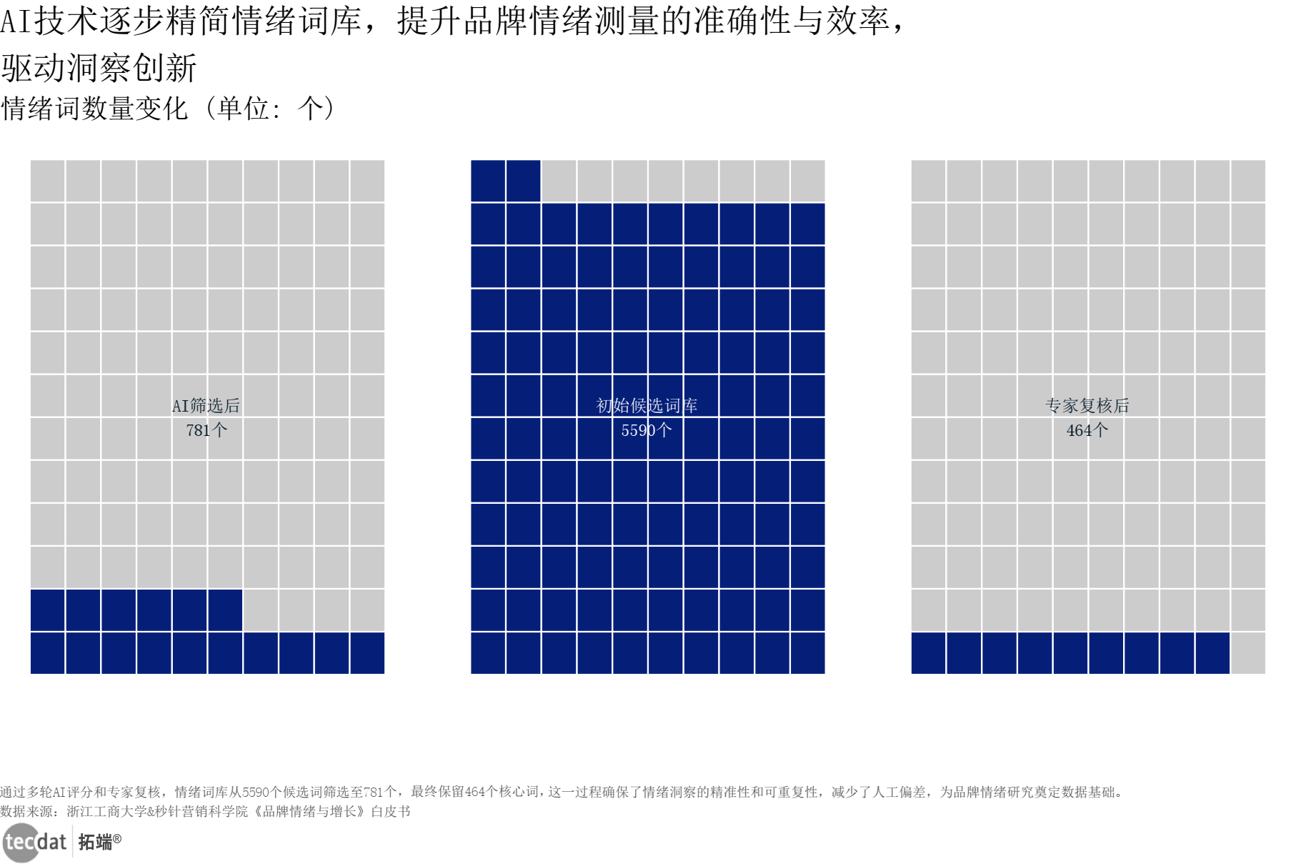 3秒解读:初始5590个候选词经AI筛选后仅剩781个,最初专家复核保留464个焦点词,相当于“从沙子里淘出金子”,每一步筛选都正在剔除冗余、强化精准性,为后续情感营销供给靠得住的数据根本。