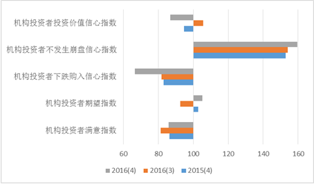 上海市投资决心指数反映了企业家、2016年第四时度,上海市投资决心指数为113。19点,环比上升2。24点,同比持平。指数位于乐不雅区域,本季度投资决心指数的三个分类指数中,企业家投资决心指数为104。51点,环比上升3。35点,同比持平;机构投资者投资决心指数为115。48点,比三季度上升3。12点,同比下降1。47点;小我投资者投资决心指数为119。59点,取前季度持平,同比上升1。50点,具体值数值见图6。