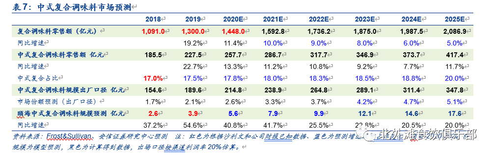 安信证券也按照对暖锅调味料行业增速、市场份额的预测对颐海将来暖锅调味料营业的发卖规模做了测算,估计暖锅调味料行业零售额2022-2025年复合增速达到9。7%。