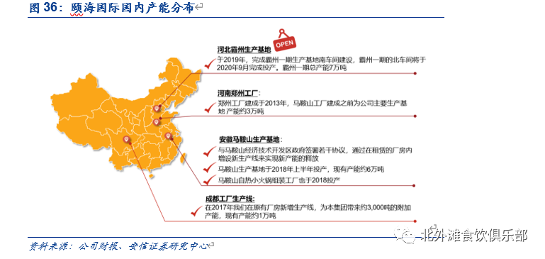 3)漯河项目:河南漯河出产正在2019年动工兴建,一期工程估计将于2021岁尾投产,预期产能为15万吨,二期设想产能为15万吨,估计将于2022年投产,此出产将包含暖锅底料、蘸 料及即食酱等产物的 出产线,有帮于缓解现时郑州工场的产能压力。