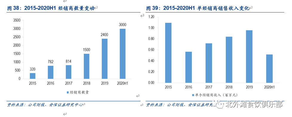 为加强对原始设备制制商(OEM)和原始设想制制商(ODM)的产质量量管控,公司实行驻厂办理,开展巡检,对产物进行抽样查抄。公司设立了OEM及ODM办理小组,对OEM产物进行办理监视:代工场引入时,办理小组会提前进行风险评估,并进行现场审核认证,只要通过认证的公司方能引入利用;按照风险级别对分歧的代工场进行分级办理,针对风险较高的工场施行全天驻厂;食物对所有OEM工场产物查验能力进行了深度的评估,同时培训OEM工场的查验人员并要求其持证上岗,进一步强化产物的平安取质量节制。公司全数产物均能够操纵产物包拆上的二维码做到厂内逃溯。针对次要原材料如色拉油、牛油、番茄、花椒、菌类等,公司勤奋逃溯到具体的企业、产物批次、甚至种植地,对产质量量进行严酷把控,加强消费者的食物平安保障。4)渠道办理:公司渠道轨制完美,经销商激励位于行业中上程度,合股人裂变+师徒制持续变化,不竭提拔激励轨制效率,有益于细分区域经销商数量拓展,提拔售点笼盖和SKU数量,截至本年上半岁尾公司经销商数量自2019年2,400家添加至3,000家,同比增67%,便利速食和调味料别离为2,400和2,800家。从单经销商收入来看,2016年公司渠道调整,打消省级代办署理经销商,拆分成地级市经销商,拓展空白区域进一步下沉渗入,添加更多终端网点笼盖。