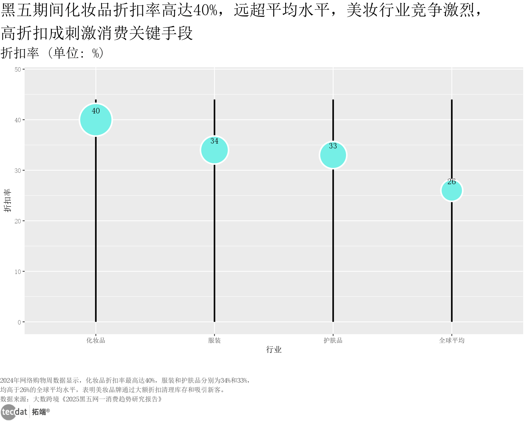 3秒解读:化妆品扣头率高达40%,服拆34%、护肤品33%,全球平均仅26%,美妆行业的“价钱和”最为激烈,品牌需正在“扣头力度”取“利润空间”间寻找均衡。