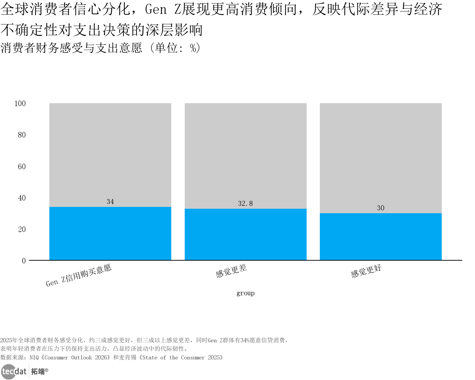 3秒解读:30%消费者感觉财政情况“比之前好”,32。8%感觉“更差”,而Gen Z群体有34%情愿信用消费,申明“经济压力下,年轻人仍愿为焦点需求买单”,代际消费韧性差别尤为凸起。