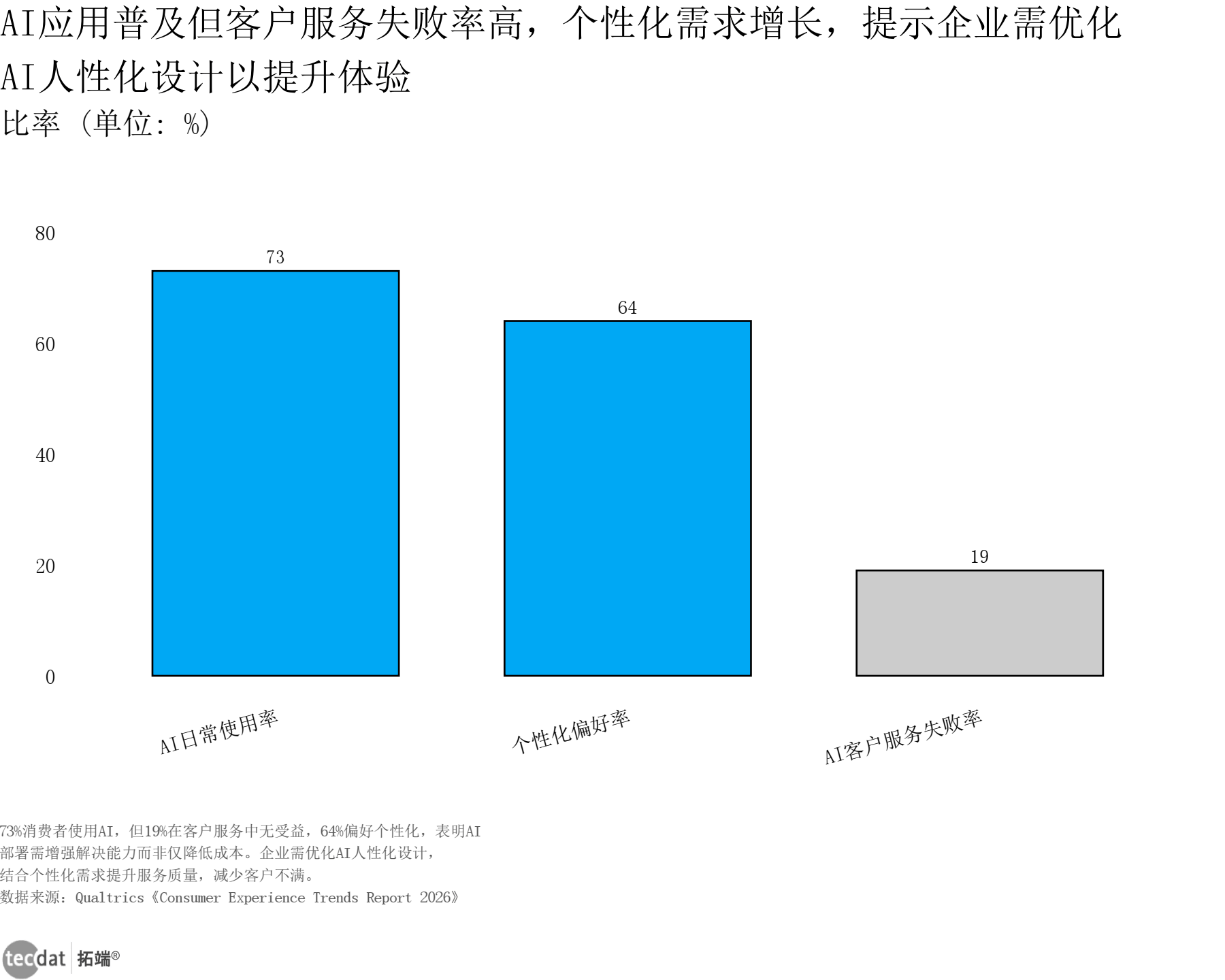 3秒解读:73%消费者利用AI,64%偏好个性化办事,但19%正在AI客服中“未获得无效帮帮”,申明“AI能满脚根本需求,但复杂问题仍需优化”,客服场景是AI使用的次要痛点。